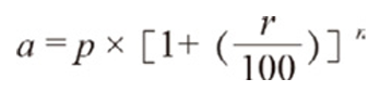 其中a代表终值,p是本金,r是收益率,n是复利期数。